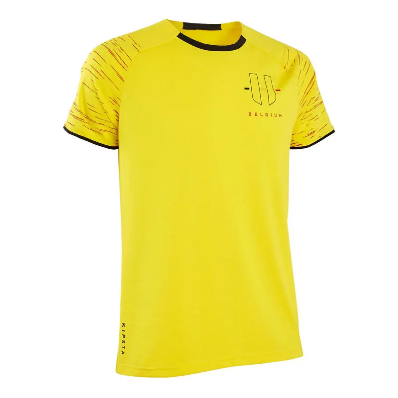 Compra en Decathlon Camiseta de fútbol Bélgica Adulto Kipsta F100 2022 amarilla Concebido para los jugadores apasionados.