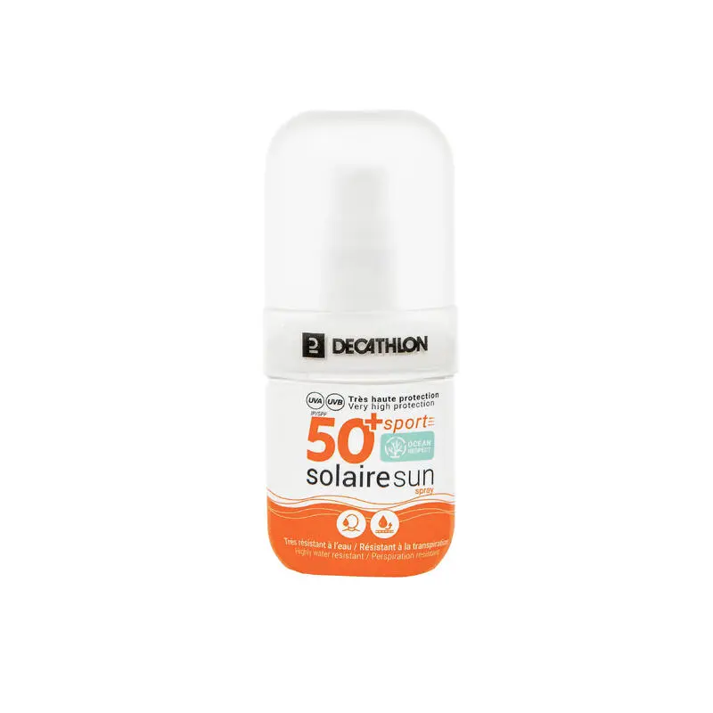 Compra en Decathlon Protección solar SPRAY SPORT IP50+ 50 ml Protección solar muy alta (IP50+) para el rostro y el cuerpo durante todas tus actividades deportivas, sea cual sea tu tipo de piel.